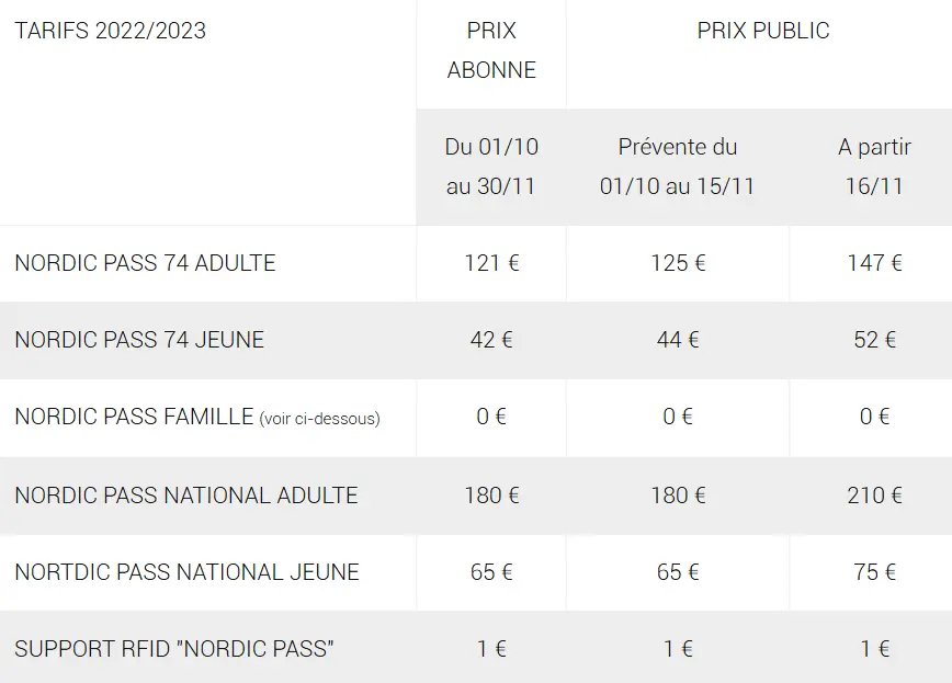 Pass famille : Pour l'achat, au sein d'une même famille de 3 pass dont au moins 1 adulte,  les 4ème, 5ème... Nordic pass jeune sont offerts.